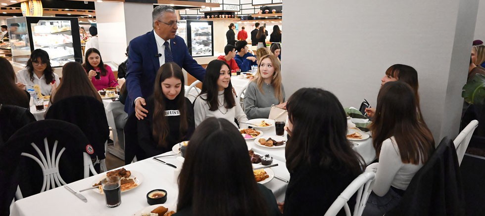 Yemek programında öğrencilerin masalarını da dolaşan Başkan Topaloğlu, öğrencilere bir ihtiyaçları olup olmadığını sordu.
