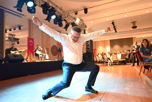 Başkan Topaloğlu, programda zeybek oynadı. Başkan Topaloğlu'nun zeybek oynaması salonu dolduranlardan büyük alkış topladı.