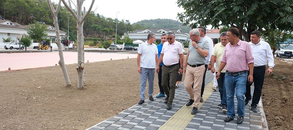 Başkan Topaloğlu ve beraberindekiler, Arslanbucak Mahallesi 432 ada yanında bulunan 3753 metrekarelik alanda yapımı devam eden parktaki çalışmalarla ilgili Kemer Belediyesi Park ve Bahçeler Müdürü Gencay Kayrak ve Kemer Belediyesi Fen İşleri Müdürü Aziz Balaman’dan bilgi aldı.