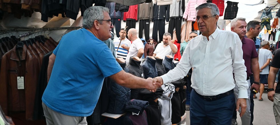Perşembe günleri Deniz Caddesi üzerinde kurulan turizm tekstil pazarında tezgah açan esnafı ziyaret eden Başkan Topaloğlu ve Başkan Yardımcısı Gül, esnafla sohbet ederek hayırlı işler temennisinde bulundu.