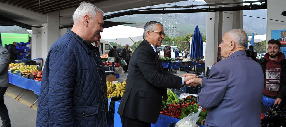 Pazar alanına alışveriş için gelen vatandaşlarla da sohbet eden Başkan Topaloğlu ve Başkan Yardımcısı Gül, vatandaşın isteklerini dinledi.