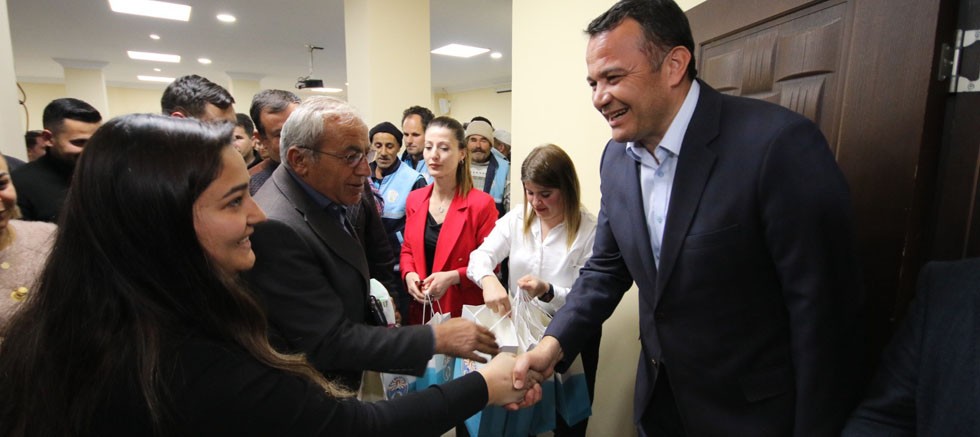 Belediye Toplantı Salonunda yeni yıl dolayısıyla düzenlenen toplantıya, Başkan Mutlu Ulutaş, başkan yardımcıları, birim müdürleri ve personeller katıldı.
