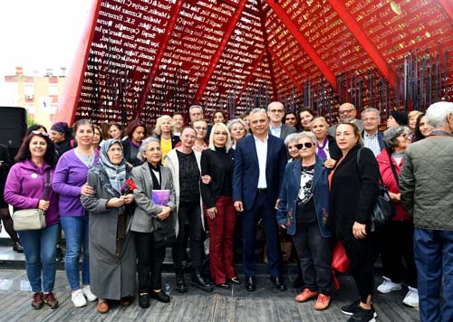Antalya’da Muratpaşa Belediyesi, Kadına Yönelik Şiddete Karşı Uluslararası Mücadele Günü’nde üzerinde katledilen 476 kadının isminin ve memleketinin yazıldığı metal levhalardan oluşan Al Yazma Anıtı’nda etkinlik gerçekleştirdi. 6 metre yüksekliğindeki anıtının önünde düzenlenen törene Başkan Uysal, eşi Ümran Uysal’la birlikte katıldı. CHP Antalya Milletvekili Rafet Zeybek ve CHP İl Başkanı Nuri Cengiz de etkinlikte yer aldı.