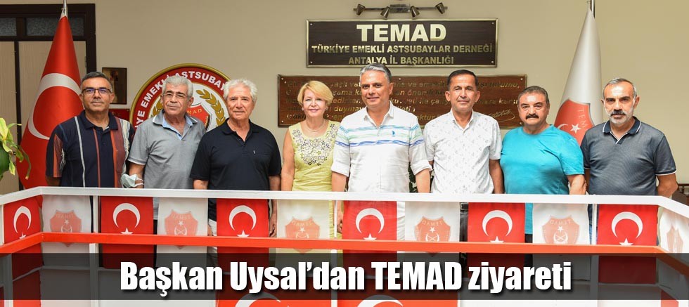 Başkan Uysal, haziran ayında yapılan görevlendirmeyle Mustafa Dündar başkanlığında oluşan TEMAD Antalya İl Yönetim Kurulunu Kışla Mahallesi’ndeki dernek binasında ziyaret etti. Dündar, ziyaret dolayısıyla teşekkürlerini dile getirirken günün anısına Başkan Uysal’a plaket takdim etti. Başkan Uysal, TEMAD Antalya İl Başkanlığının yeni yönetim kuruluna başarılar dilerken her türlü işbirliğine hazır olduklarını dile getirdi.