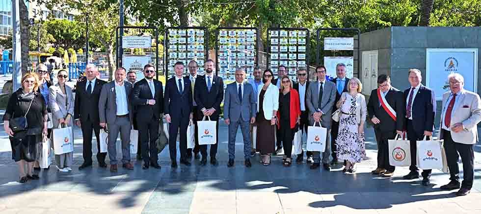 Başkan Uysal konuşmasının ardından heyetlere Kaleiçi’nin tarihi konak anahtarlarının replikalarının yer aldığı plaketleri takdim etti.