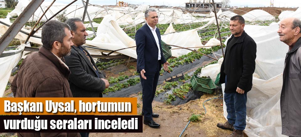 Antalya’nın Muratpaşa ilçesine bağlı Ermenek Mahallesi’nde sabah saatlerinde hortum etkili oldu. Çok sayıda sera zarar görürken Başkan Uysal, bölgede incelemelerde bulundu. Mahalle Muhtarı Ali Avcı’nın eşlik ettiği Başkan Uysal, hortumdan etkilenen üreticilere geçmiş olsun dileklerini iletti. Başkan Uysal, incelemenin ardından yaptığı açıklamada “Can kaybımız yok, yaralı yok, Allah'a şükür. Daha beterinden ‘Allah saklasın’ diyoruz” diye konuştu.