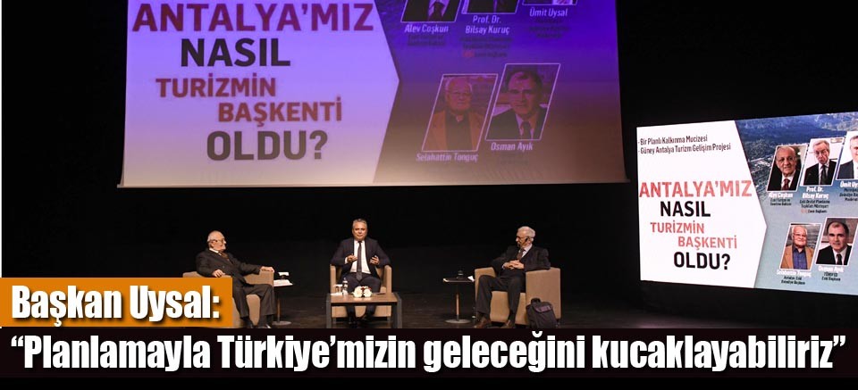 Antalya’da, Muratpaşa Belediyesi’nin düzenlediği söyleşide, dünyanın en başarılı turizm gelişim projelerinden Güney Antalya Turizm Gelişim Projesi konuşuldu. Antalya’nın planlı kalkınma modeliyle turizm başkenti haline gelmesinin her yönüyle değerlendirildiği söyleşide Eski Turizm ve Tanıtma Bakanı Alev Coşkun, eski Devlet Planlama Teşkilatı müsteşarı Prof. Dr. Bilsay Kuruç, eski Antalya Belediye Başkanı Selahattin Tonguç konuşmacı olarak yer aldı. Belediye Başkanı Uysal da söyleşinin moderatörlüğünü yaptı.