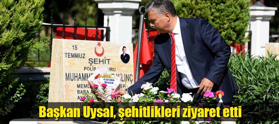 Belediye Başkanı Uysal da arife günü, erken saatlerde Uncalı Kent Mezarlığı’na gelerek yakınlarının kabirlerini ziyaret için gelen ailelerle hem baş sağlığı diledi hem de bayramlarını kutladı. Başkan Uysal, Uncalı Kent Mezarlığı’nda şehitlikleri de ziyaret etti. İlk olarak Garnizon Şehitliği’ne geçen Başkan Uysal, şehitlerin kabirlerini tek tek ziyaret etti. Birer buket çiçek bırakarak dua etti. Garnizon Şehitliği’nin ardından Başkan Uysal, Polis Şehitliği’ne geçti. Ümit Uysal, burada da kabirleri tek tek ziyaret ederek şehitler için dua etti.