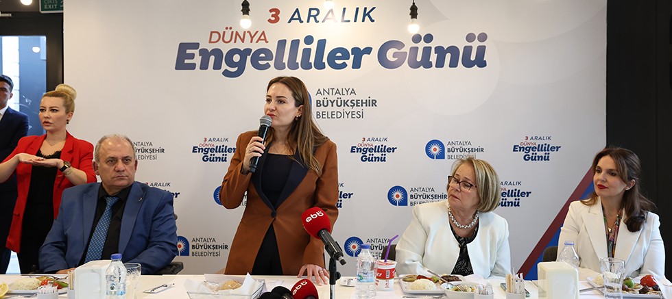 3 Aralık Dünya Engelliler Günü nedeniyle düzenlenen etkinlikte Antalya Büyükşehir Belediye Başkan Vekili Büşra Özdemir, engellilere hizmet veren sivil toplum kuruluşlarının temsilcileriyle Barbaros Çay Bahçesi’nde bir araya geldi. Etkinlikte Antalya Büyükşehir Belediyesinde Başkan Danışmanı olarak görev yapan Türkiye Sakatlar Derneği Antalya Şube Başkanı Mehmet Karavural da yer aldı.