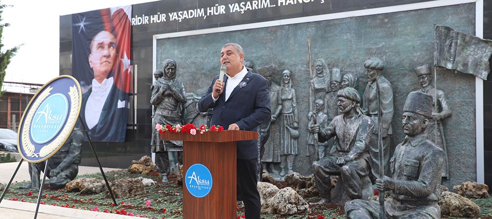 Aksu Belediyesi, Gazi Mustafa Kemal Atatürk’ün ebediyete irtihalinin 87. yılında anma töreni düzenledi. Başkan Yıldırım törende yaptığı konuşmada “Atatürk’ü anlamak sevgiyle başlar; onun yolunda yürümek, okumak ve üretmekle devam eder” dedi.