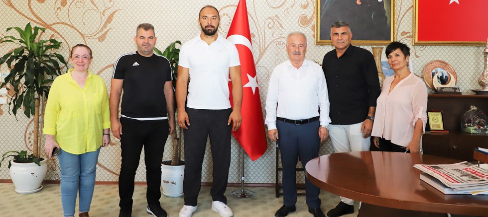 Aksu Belediyesi tarafından bu yıl yedincisi gerçekleştirilen yağlı pehlivan güreşlerinde başpehlivan olan Ali Gürbüz, Belediye Başkanı Halil Şahin’i ziyaret etti.