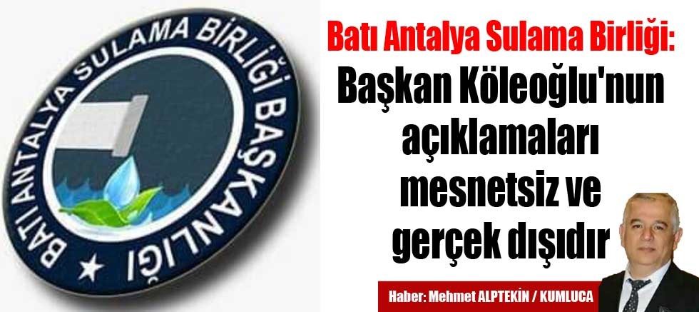 Batı Antalya Sulama Birliği'den yapılan açıklamada, değişik yayın organlarında; “Başkan Köleoğlu, İşletme Yetkisinin Belediye'den Alınmasına Tepki Gösterdi” başlığı ile yayınlanan haberde, 'Kumluca Belediye Başkanı Mustafa Köleoğlu'nun açıklamaları mesnetsiz, maksatlı ve gerçek dışıdır' denildi.