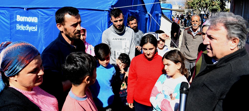 Çalışmaları bizzat yerinde takip eden Bornova Belediye Başkanı Dr. Mustafa İduğ, yaşamlarını zor şartlar altında sürdüren depremzede ailelere moral verdi. Yaşanan felaketin çok büyük olduğunu ifade eden Başkan İduğ, “10 ilde büyük yıkım oldu ve biz Bornova Belediyesi olarak tüm imkanlarımızla sizlerin yaralarını sarmak için buradayız. Yaşam şartları özellikle sizler için çok daha ağır. Bu anlamda özel özel bir çalışmayla yanınızda olmak istedik. Bundan sonra da olmaya devam edeceğiz. Yaralarımızı hep birlikte saracağız” dedi.