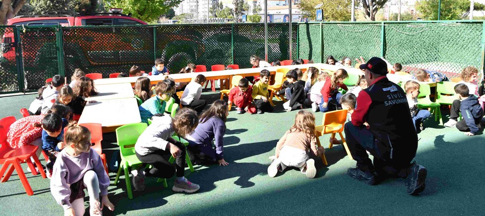 Konyaaltı Belediyesi Destek Hizmetleri Sivil Savunma Birimi ekipleri Deprem Haftası nedeniyle belediyenin kreş ve gündüz bakım evlerindeki minik öğrencilere acil durum eğitimi ve deprem tatbikatı gerçekleştirdi. Tatbikata arama kurtarma köpeği Zeyna’nın da katılması renkli görüntülere sahne oldu.