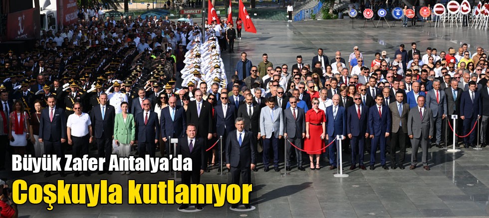 30 Ağustos Zafer Bayramı'nın 101. yıl dönümü kapsamında Antalya’da ilk olarak Cumhuriyet Meydanı’nda tören düzenlendi. Antalya Valisi Hulusi Şahin ve Antalya Büyükşehir Belediye Başkanı Muhittin Böcek, meydandaki Atatürk Anıtı’na çelenk bıraktı.