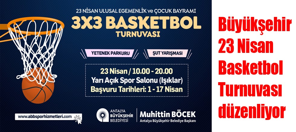 Büyükşehir Belediyesi Gençlik ve Spor Hizmetleri Dairesi Başkanlığı tarafından düzenlenen “’23 Nisan Ulusal Egemenlik ve Çocuk Bayramı 3x3 Basketbol Turnuvası” (2008- 2009), (2010-2011), (2012) doğumlu erkek ve kızlar kategorilerinde yapılacak.