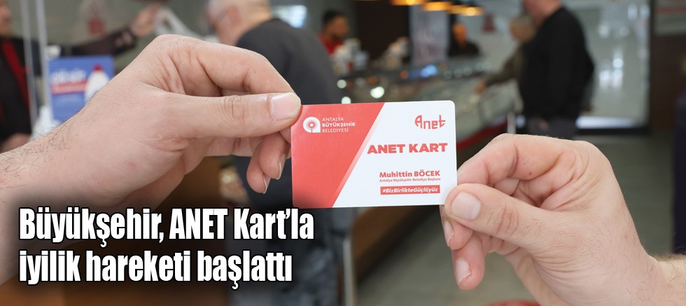 Antalya Büyükşehir Belediyesi, mübarek Ramazan Ayı ile birlikte ‘Herkes et yiyebilsin’ sloganıyla ANET Kart projesiyle iyilik hareketi başlattı. Hayırseverler, Halk Et Mağazalarından temin edebileceği ANET Kart ile ihtiyaç sahiplerine yardım edebiliyor. İhtiyaç sahibi vatandaşlar karta yükletilen bakiye ile Halk Et mağazalarındaki ürünlerden alış veriş yapabiliyor.