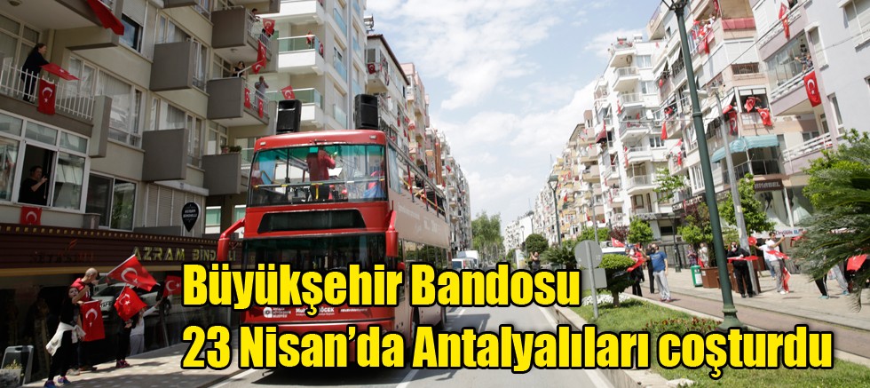 Koronavirüs salgını nedeniyle evlerinde kalan Antalyalılara 23 Nisan coşkusunu yaşatmak için Antalya Büyükşehir Belediye Başkanı Muhittin Böcek’in talimatıyla üstü açık otobüsle yollara düşen Antalya Büyükşehir Belediyesi Bando ve Orkestrası, 23 Nisan Ulusal Egemenlik ve Çocuk Bayramı’nda da konserlerine devam etti.