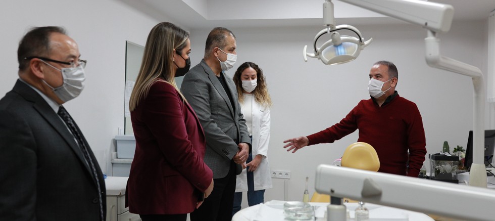 Aile Sağlığı Merkezinde yer alan yetişkin ve çocuk diş ünitelerini inceleyen ve bilgi alan Başkan Böcek, “Önce sağlık, önce insan parolasıyla Kepez'imize kazandırmış olduğumuz sağlık merkezini, halkımızın hizmetine sunmadan önce inceledik. Daha önce Sütçüler’de hizmet veren Çocuk Ağız Diş Sağlığı Merkezi’ni daha merkezi bir yer olan Otogar Kavşağı’na taşıdık. Sütçüler’deki Ağız Diş Sağlığı Merkezi’nde 5-14 yaş arası çocuklarımıza hizmet veriyorduk. Şimdi burada yetişkinlere de hizmet vereceğiz. 5’i yetişkinlere 5’i çocuklarımıza olmak üzere 10 diş hekimimiz hizmet verecek. Evde Sağlık Birimimiz de bu binamızda olacak” dedi.