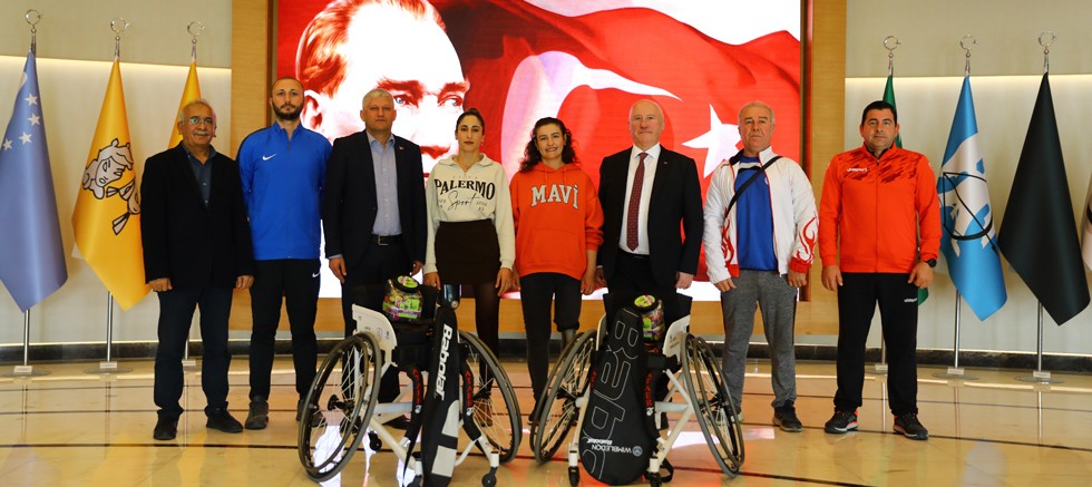 Antalya Büyükşehir Belediyesi, Tekerlekli Sandalye Tenis Milli Takımı’nın Antalyalı sporcuları Çiğdem Sayın ve Esra Bozdemir Işık’a ekipman desteğinde bulundu. Yeni tenis tekerlekli sandalye ve raketlerine kavuşan engelsiz sporcular, Başkan Böcek’e destekleri için teşekkür etti.