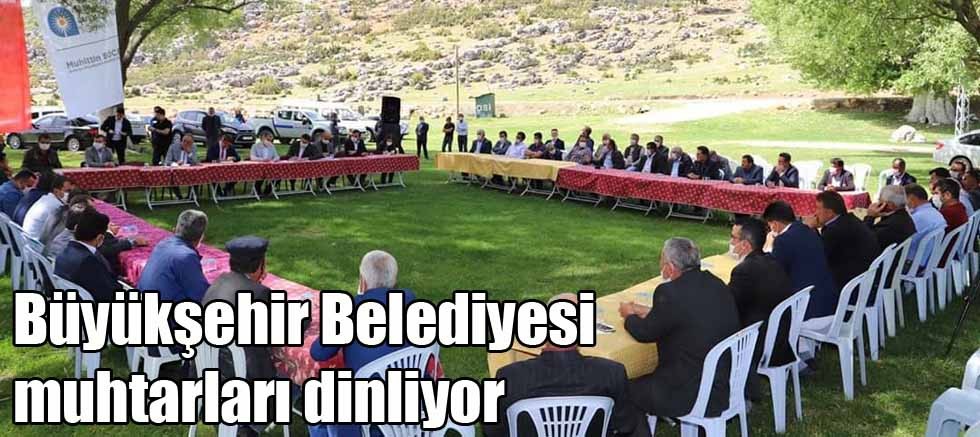 Antalya’nın 19 ilçesi 913 mahallesinde hizmetlerin eksiksiz ve sorunsuz şekilde yerine getirilmesi noktasında var gücüyle çalışan Antalya Büyükşehir Belediyesi, eksikleri ve sorunları tespit etme noktasında muhtarlarla sık sık toplantı düzenliyor. Başkan Danışmanı Mehmet Balık, Tarımsal Hizmetler Dairesi Başkanı Seda Özel, Muhtarlık İşleri Dairesi Başkanlığı Muhtar Bilgi Merkezi Şube Müdürü Cihangir Yılmaz ve ASAT yetkilileri ile birlikte ilçeleri gezerek muhtarlarla toplantı yapıyor. Büyükşehir yetkilileri muhtarlardan mahallelerindeki eksikleri, istek ve önerilerini dinliyor.
