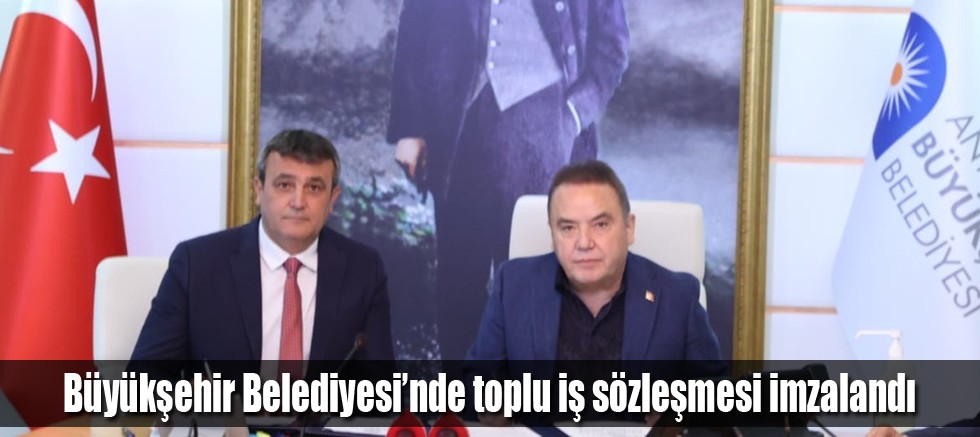 Antalya Büyükşehir Belediyesi’nde Antalya İnsan Kaynakları A.Ş.’ye bağlı çalışan 7 bin personele bayram öncesinde toplu iş sözleşmesi müjdesi geldi. Ücret ve sosyal haklarda iyileştirme leri kapsayan sözleşme; Antalya Büyükşehir Belediye Başkanı Muhittin Böcek ile Türkiye Belediyeler ve Genel Hizmetler İşçileri Sendikası (Belediye-İş) Antalya Şube Başkanı Mehmet Mercan tarafından imzalandı.