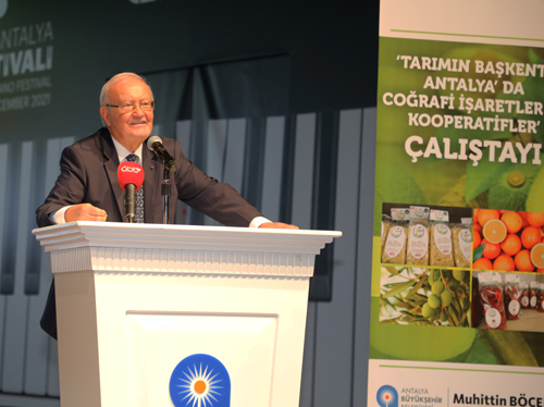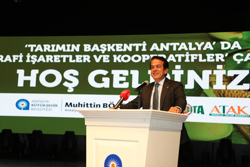 Antalya Ticaret Borsası Başkanı Ali Çandır da tarım sektörüne gösterdiği önemden dolayı Antalya Büyükşehir Belediye Başkanı Muhittin Böcek’e teşekkür etti. Ali Çandır, “Kooperatiflerimizin kurumsallaşmasına çaba harcamamız lazım. Antalya gibi tarımda çok üstün vasıfları olan bir kentin Türkiye’ye hatta dünyaya örnek olabilecek projeleri çıkartacağından hiç kuşkum yok. Coğrafi işaret meselemize memleket meselesi diyoruz. Yöresel ürünlerimiz ve yörelerimizin kalkınması çok önemli. ATB olarak 15 yıldır bu konuya büyük önem veriyoruz. Yöresel ürünlerin hakkını ve hukukunu korumak ve garanti altına almak önemlidir. Bu korumayı, hem ulusal hem de uluslararası alanda, sağlayan coğrafi işaret tescilleridir” diye konuştu.