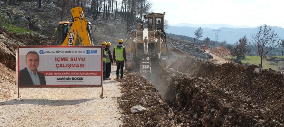 Antalya Büyükşehir Belediyesi, orman yangınlarının ardından Manavgat bölgesinin alt yapısını yenilemeye yönelik başlattığı çalışmalar devam ediyor. 50 milyon lira yatırım bedelli Belenobası Grup İçmesuyu İsale ve Şebeke Hatları Yapım İşi ile yangın bölgesinin içme suyu sorunu çözülüyor.