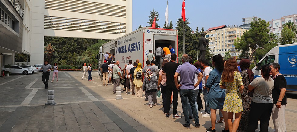 Sosyal Hizmetler Dairesi Başkanlığı’na bağlı Aşevi tırı, son olarak Antalya Büyükşehir Belediyesi önünde aşure dağıttı. Belediye önünde ikram edilen iki bin kişilik aşure kısa zamanda tükendi. İlçelerde de aşure etkinliğini sürdüren Büyükşehir Belediyesi, Kemer ve Korkuteli ilçelerinde de vatandaşlara aşure ikramında bulundu. Korkuteli Belediye Başkanı Saniye Caran kazanın başına geçerek, vatandaşlara aşure dağıttı. Vatandaşlar, Büyükşehir Belediyesi’ne aşure ikramlarından dolayı teşekkür etti.
