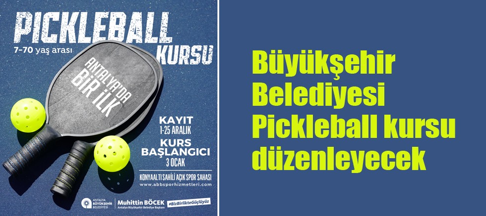Antalya Büyükşehir Belediyesi, Türkiye’de yeni duyulmaya başlayan pickleball sporunu Antalyalılarla tanıştırmak için ücretsiz kurs açacak. Pickleball eğitimi almak isteyen 7 yaş ve üzeri vatandaşlar 25 Kasım’a kadar www.abbsporhizmetleri.com adresinden ön kayıtlarını yapabilecek.