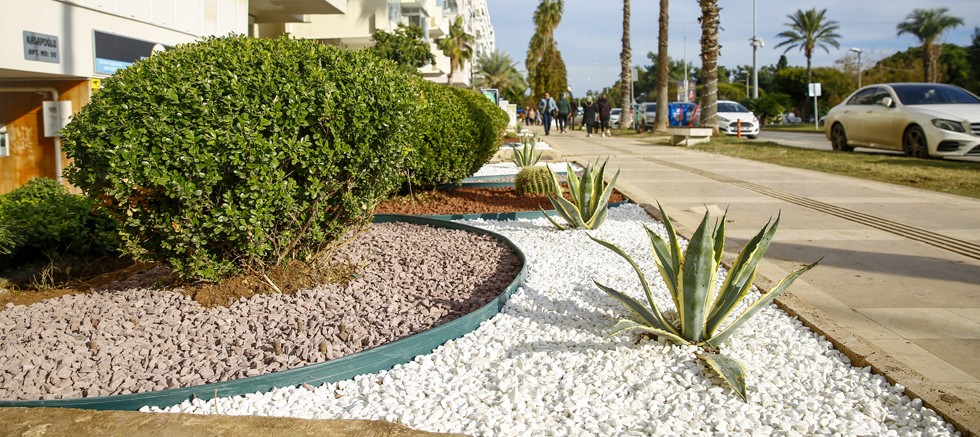 Antalya’ya hem yeni yeşil alanlar kazandıran hem de mevcut yeşil alanları güzelleştirmeye devam eden Antalya Büyükşehir Belediyesi’nin, Konyaaltı Caddesi’ndeki çalışmaları yaklaşık 1000 metrekarelik bir alanı kapsadı. Doğal volkanik taşlar ve modern peyzaj ekipmanlar kullanılarak gerçekleştirilen çalışma beğeni topladı.