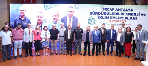 Antalya Büyükşehir Belediyesi tarafından hazırlanan Sürdürülebilir Enerji ve İklim Eylem Planı’nın tanıtım toplantısı Atatürk Kültür Merkezi (AKM) Perge Salonu’nda gerçekleştirildi. Tanıtım toplantısına Antalya Büyükşehir Belediye Başkanı Muhittin Böcek, Cumhuriyet Halk Partisi (CHP) Antalya İl Başkanı Nuri Cengiz, Demir Enerji Kurucu Ortağı Caner Demir, TV Yapımcısı Güven İslamoğlu, Sivil Toplum Kuruluşu (STK) temsilcileri, Büyükşehir Belediyesi bürokratları ve çok sayıda davetli katıldı.