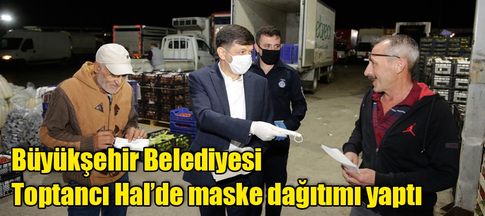 Büyükşehir Belediyesi koronavirüs önlemeleri kapsamında kentin her noktasında çalışmalarına gece gündüz devam ediyor. Büyükşehir Belediyesi son olarak Türkiye’nin en büyük yaş sebze-meyve hali olan Antalya Toptancı Hal’de maske dağıtımı gerçekleştirdi.