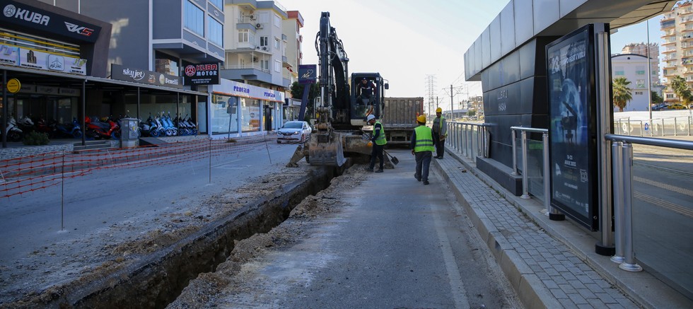 Antalya Büyükşehir Belediyesi, Varsak Süleyman Demirel Bulvarı’nda içme suyu isale hattında yenileme çalışması yapıyor.