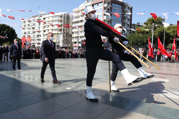 Başkan Muhittin Böcek, ardından 29 Ekim Cumhuriyet Bayramı ve Türkiye Cumhuriyeti'nin kuruluşunun 98'inci yıl dönümü kapsamında Cumhuriyet Meydanı'nda düzenlenen Çelenk Sunma Töreni’ne katıldı. Antalya Valisi Ersin Yazıcı ile birlikte Atatürk Anıtı’na çelenk sunan Başkan Muhittin Böcek, törenin ardından vatandaşlarla sohbet etti.