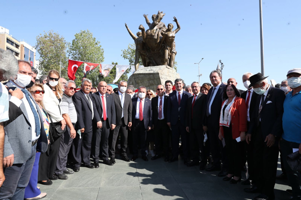 29 Ekim Cumhuriyet Bayramı nedeniyle Antalya Büyükşehir Belediyesi’nde yer alan Atatürk anıtı önünde de tören düzenlendi. Törene Büyükşehir Belediyesi Genel Sekreteri Cansel Tuncer, Meclis Üyeleri, Başkan Danışmanları, Daire Başkanları, belediye personeli ve Büyükşehir Belediyesi Gençlik Meclisi üyeleri katıldı. Törende, Genel Sekreter Cansel Tuncer’in Büyükşehir Belediye Başkanı Muhittin Böcek adına Atatürk Anıtı’na çelenk sunmasının ardından saygı duruşunda bulunuldu. Ardından coşkuyla İstiklal Marşı söylenerek, 29 Ekim Cumhuriyet Bayramı kutlandı.