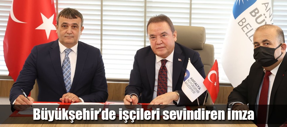Antalya Büyükşehir Belediyesi ile Belediye-İş Sendikası arasında 341 işçiyi kapsayan toplu iş sözleşmesi imzalandı. Sözleşmeyle işçilere ilk iki yılda yüzde 28, üçüncü yıl da ise enflasyon oranında zam yapıldı. Büyükşehir Belediye Başkanı Muhittin Böcek, her zaman işçinin ve emekçinin yanında olduğunu belirterek, toplu iş sözleşmesinin hayırlı olmasını diledi.