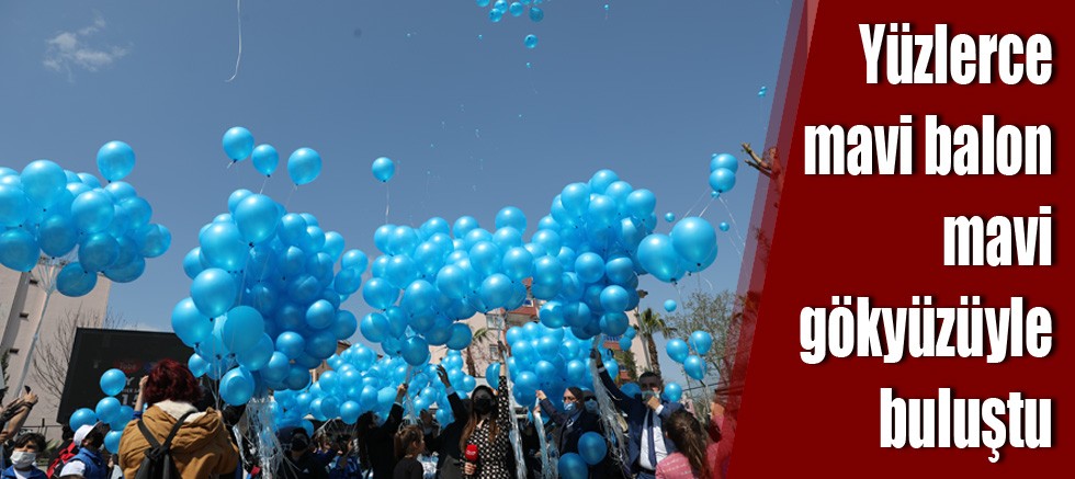 Sosyal mesafe kuralları gözetilerek gerçekleştirilen etkinlikte otizme dikkat çekmek için katılımcılar tarafından yüzlerce mavi balon gökyüzüne bırakıldı.