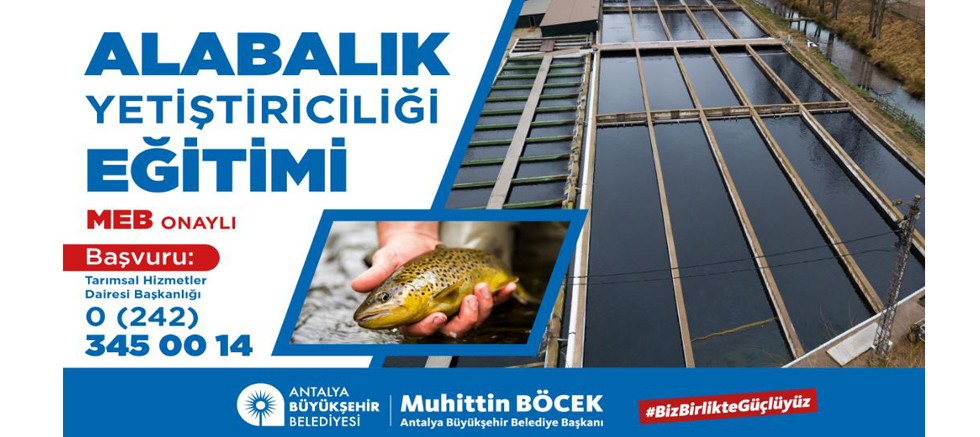 Antalya Büyükşehir Belediyesi Tarımsal Hizmetler Dairesi Başkanlığı Alabalık Yetiştiriciliği Eğitimi düzenliyor. Milli Eğitim Bakanlığı’ndan onaylı olarak düzenlenen eğitimde, anaç alabalıktan yavru alımı, sofralık boya kadar gelen süreçteki bakım aşamaları teorik olarak anlatılacak. Ardından bir alabalık çiftliğinde uygulamalı eğitim verilecek. 72 saat sürecek eğitim için 0 242 345 00 14 numaralı telefonda başvuru yapılması gerekiyor.