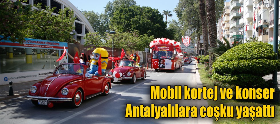 23 Nisan etkinlikleri Antalya Büyükşehir Belediyesi Kültür ve Sosyal İşler Dairesi Başkanlığı tarafından bir haftadır tüm ilçelerde verilen mobil konserler merkez ilçelerde devam etti. Mobil konserle birlikte 23 Nisan coşkusu mobil kortej ile doruğa çıktı. Cam Piramit alanından hareket eden mobil kortej Muratpaşa, Kepez ve Konyaaltı güzergah üzerinden Antalyalıları ve çocukları selamladı. Pandemi nedeniyle sadece araçlardan oluşan mobil kortej ve mobil konser etkinliği Antalyalılarda büyük bir heyecan ve coşku yaşattı. Konser sırasında bağımsızlığımızın sembolü bayraklarla balkonlara çıkan Antalyalılar, marş ve şarkılara eşlik ederek, büyük coşku yaşadı.