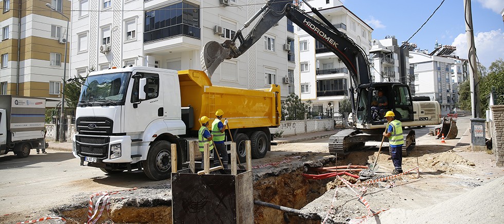 Antalya Büyükşehir Belediyesi ASAT Genel Müdürlüğü ekipleri tarafından, daha önce yağmur suyu taşkınları yaşanan mahallenin sorunlarını çözüme ulaştırmak amacıyla yapılan çalışmalarda 500 metrelik 1200lük betonarme boru ve 1000lik koruge boru kullanılacak.