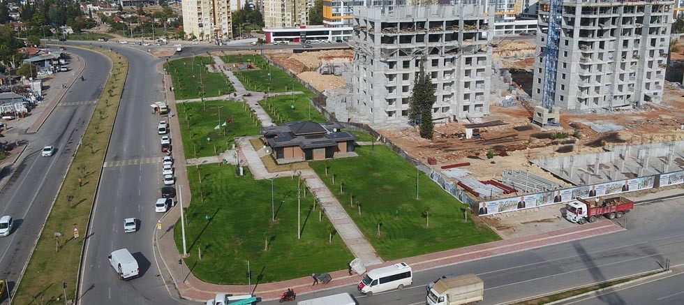 Antalya Büyükşehir Belediye Başkanı Muhittin Böcek’in planlı, kurallı ve kimlikli kent hedefiyle Güneş Mahallesi’nde hayata geçirdiği Kentsel Dönüşüm Projesi’nde 335 konutun blokları hızla yükselirken, proje alanı yanındaki boş alan parka dönüştürüldü. Güneş Mahallesi Hastane Caddesi üzerindeki 8 bin metrekarelik alana kazandırılan park ile bölge yeni bir yeşil alan kazandı.