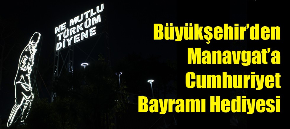 Antalya Büyükşehir Belediyesi Manavgat’a Cumhuriyet Bayramı hediyesi sundu. Büyükşehir Belediyesi Park Bahçeler Dairesi Başkanlığı atölyelerinde özel olarak üretilen Ulu Önder Gazi Mustafa Kemal Atatürk’ün ‘Ne Mutlu Türküm Diyene’ sözü Manavgat’ın en yüksek tepesi olan Türkbeleni’ne asıldı.