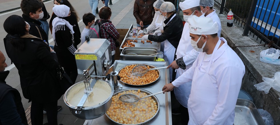 Antalya Büyükşehir Belediyesi, Miraç Kandili nedeniyle Muratpaşa Camisi önünde vatandaşlara 2 bin kişilik lokma ikramında bulundu.