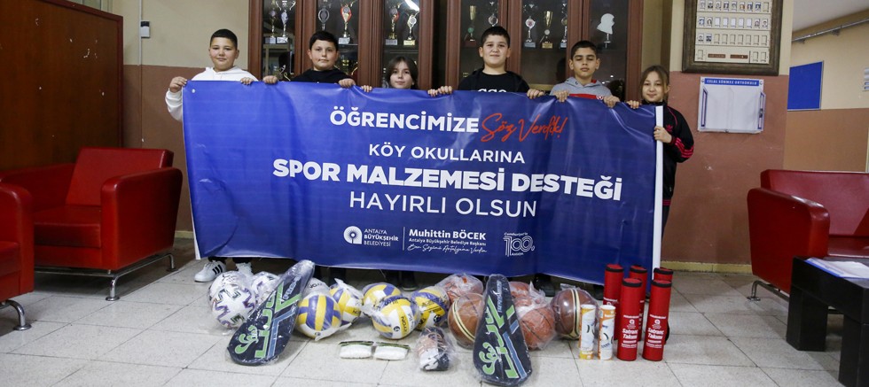 Antalya Büyükşehir Belediyesi, geleceğin teminatı çocukları, her alanda desteklemeye devam ediyor. Antalya Büyükşehir Belediyesi, okullardan gelen spor malzemesi taleplerine kayıtsız kalmayarak malzeme desteğinde bulunuyor. Antalyalı çocukların sporla iç içe yetişmesi adına sağlanan destekten şimdiye kadar, Antalya’nın 13 ilçesinden toplam 80 okuldaki öğrenciler faydalandı. Son olarak ise Aksu Pınarlı Cumhuriyet İlkokulu ve Ortaokulu’na malzeme desteğinde bulunuldu. Spor malzemesi desteği kapsamında, okullara; futbol, voleybol, basketbol, tenis ve badminton topları, fileler, tenis ve badminton raketleri, satranç takımı ve basketbol formaları dağıtıldı.
