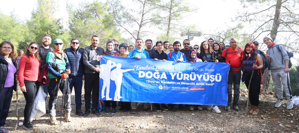 Antalya Büyükşehir Belediyesi, Antalya’nın popüler kayak merkezi Saklıkent yolu üzerinde yer alan Doyran bölgesinde “Tarihin izinde doğa yürüyüşü” etkinliği düzenledi. Etkinliğe katılanlar yürüyüş güzergahı üzerinde bulunan Bizans dönemi dağ manastırına ev sahipliği yapan bölgeyi rehberler eşliğinde gezdi.