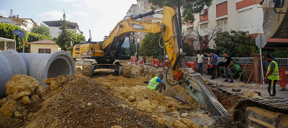 Antalya Büyükşehir Belediyesi, Kepez ilçesi Yükseliş Mahallesi’nde yağmur suyu drenaj hattı çalışması yapıyor.