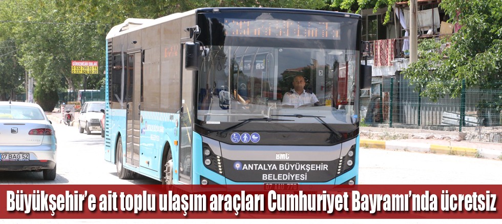 Antalya Büyükşehir Belediyesi, 29 Ekim Cumhuriyet Bayramı’nda belediyeye ait toplu ulaşım araçlarının ücretsiz yolcu taşıması kararı aldı. 29 Ekim Cuma günü belediyenin resmi plakalı otobüsleri, ANTRAY ve nostalji tramvayı vatandaşların kutlamalara rahat ulaşım sağlamaları ve Cumhuriyet Bayramı’nı coşkuyla kutlamaları için ücretsiz olacak.