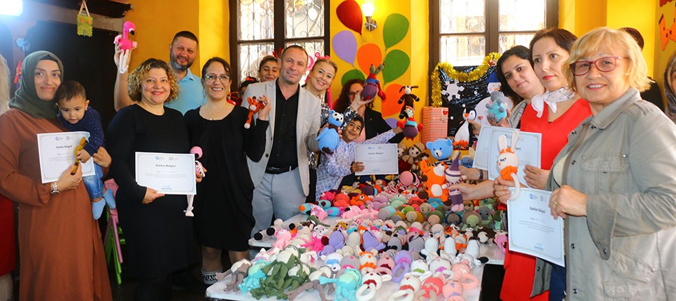 Antalya Büyükşehir Belediyesi’nin örgü bebek atölyesinde eğitim alan kursiyerler katılım belgelerini aldı. Antalyalı kadınların ürettiği el emeği örgü bebekler dünyanın dört bir yanında pazarlanarak, aile bütçelerine gelir sağlayacak.