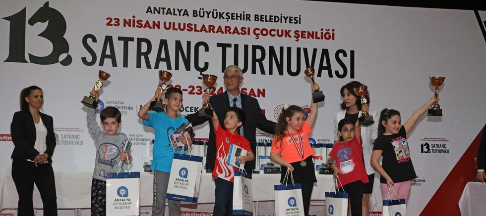 Büyükşehir Belediyesi ve Türkiye Satranç Federasyonu Antalya İl Temsilciliği iş birliği ile gerçekleştirilen 23 Nisan Ulusal Egemenlik ve Çocuk Bayramı 13’üncü Geleneksel Satranç Turnuvası tamamlandı. Cam Piramit Fuar ve Kongre Merkezi’nde gerçekleşen turnuvanın ilk gününde 5-6 yaş grubu çocuklara yönelik özel turnuva düzenlendi. Turnuvanın 23-24 Nisan tarihlerinde ise 7-12 yaş grubu genel ve kızlar olmak üzere 12 farklı kategoride 7 tur halinde gerçekleşti. Bin 240 sporcunun katıldığı turnuva çekişmeli oyunlara sahne oldu.